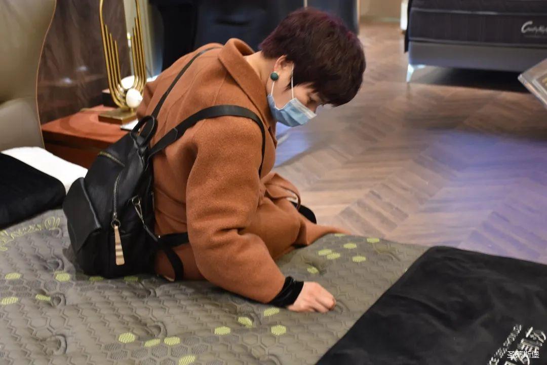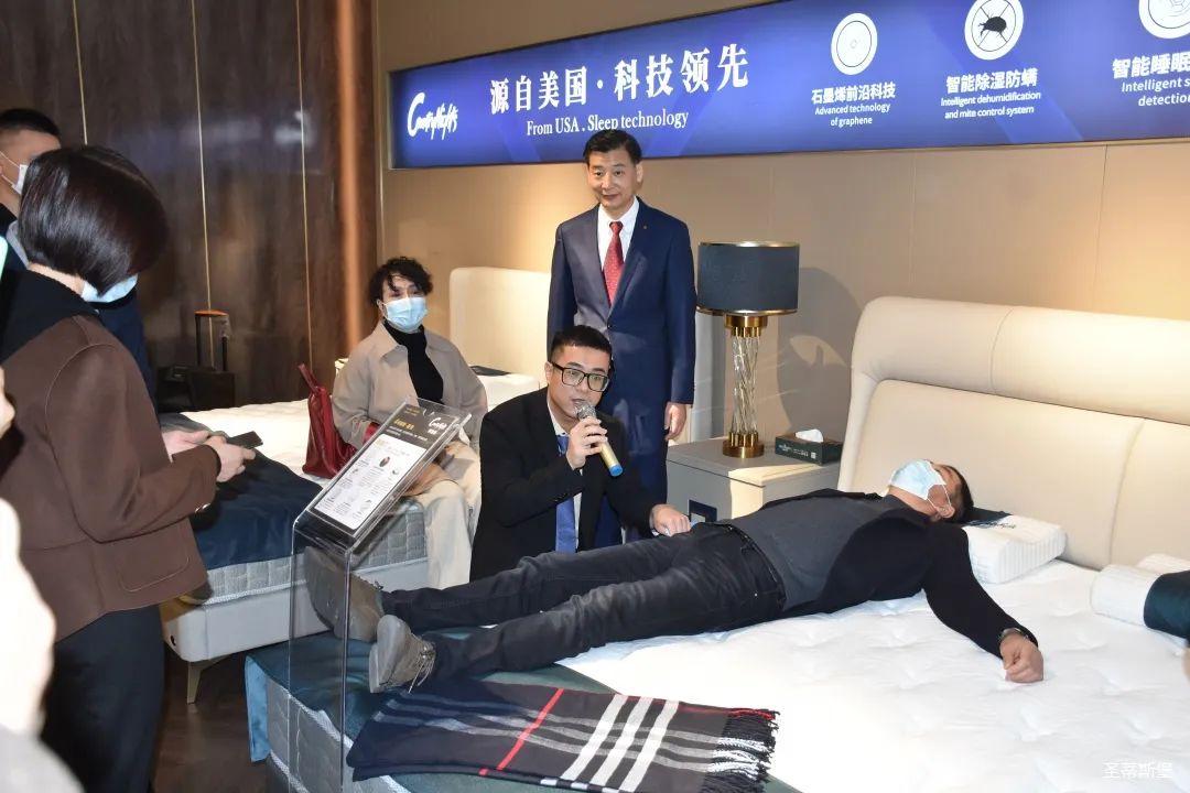 嘉賓們紛紛現(xiàn)場體驗夢凱莎床墊的科技睡感。
